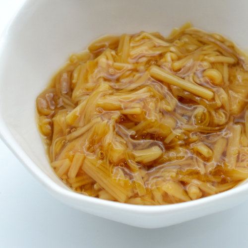 えのき茸、醤油、ぶどう糖果糖液糖、食塩、柚子胡椒、柚子、柚子果汁、酵母エキス、柚子エキス/調味料(アミノ酸等)、増粘多糖類、pH調整剤、酸化防止剤(V.C)(一部に小麦・大豆を含む) |
